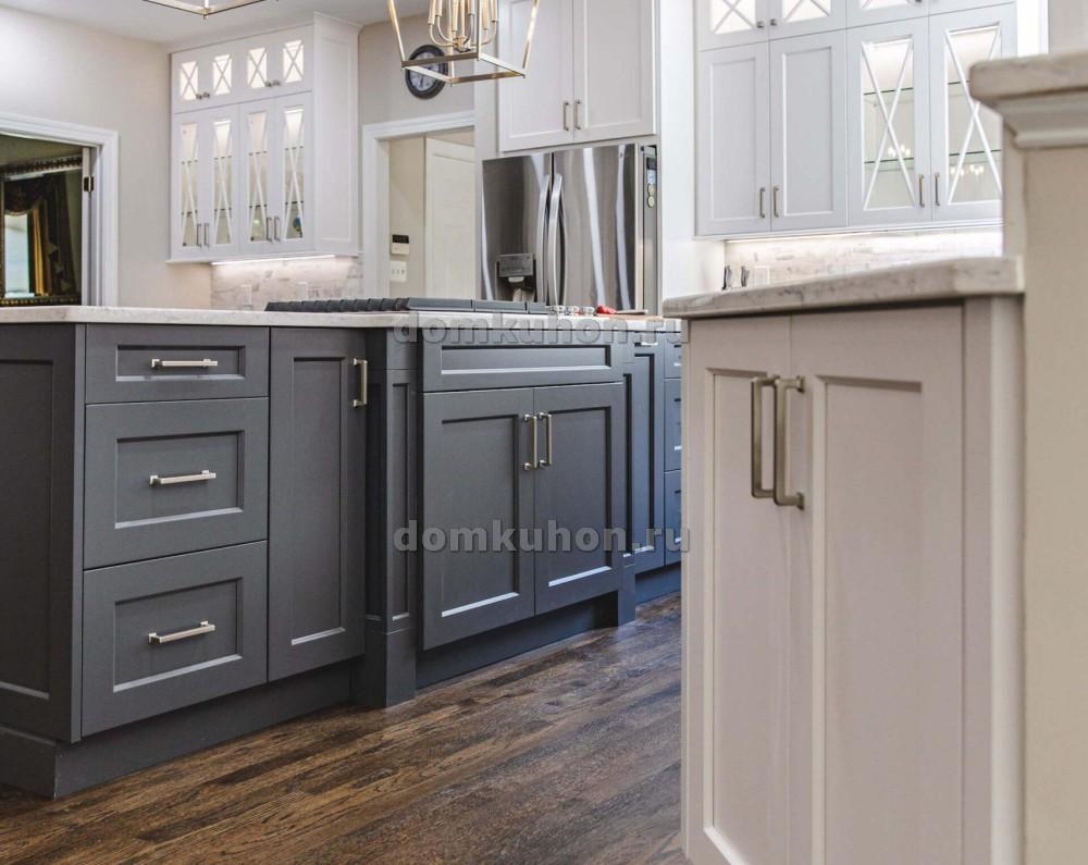 Вашему вниманию представлена кухня "Фредерика" — истинное воплощение элегантности и функциональности. Основанный на классических линиях, её дизайн воплощает в себе безвременной шик с современными акцентами. Нежно-серый цвет фасадов гармонирует с теплым оттенком деревянного пола, создавая уютную и приглашающую атмосферу. Центральный элемент — остров, с его гладкой мраморной столешницей, не только служит обеденной зоной, но и предлагает дополнительное рабочее пространство и хранение. Освещение в виде изящных подвесных светильников добавляет кухне света и изысканности. Эта кухня — идеальное решение для тех, кто ценит стиль, комфорт и качество. С кухней "Фредерика" каждый прием пищи превратится в особенное событие, а готовка станет настоящим удовольствием.